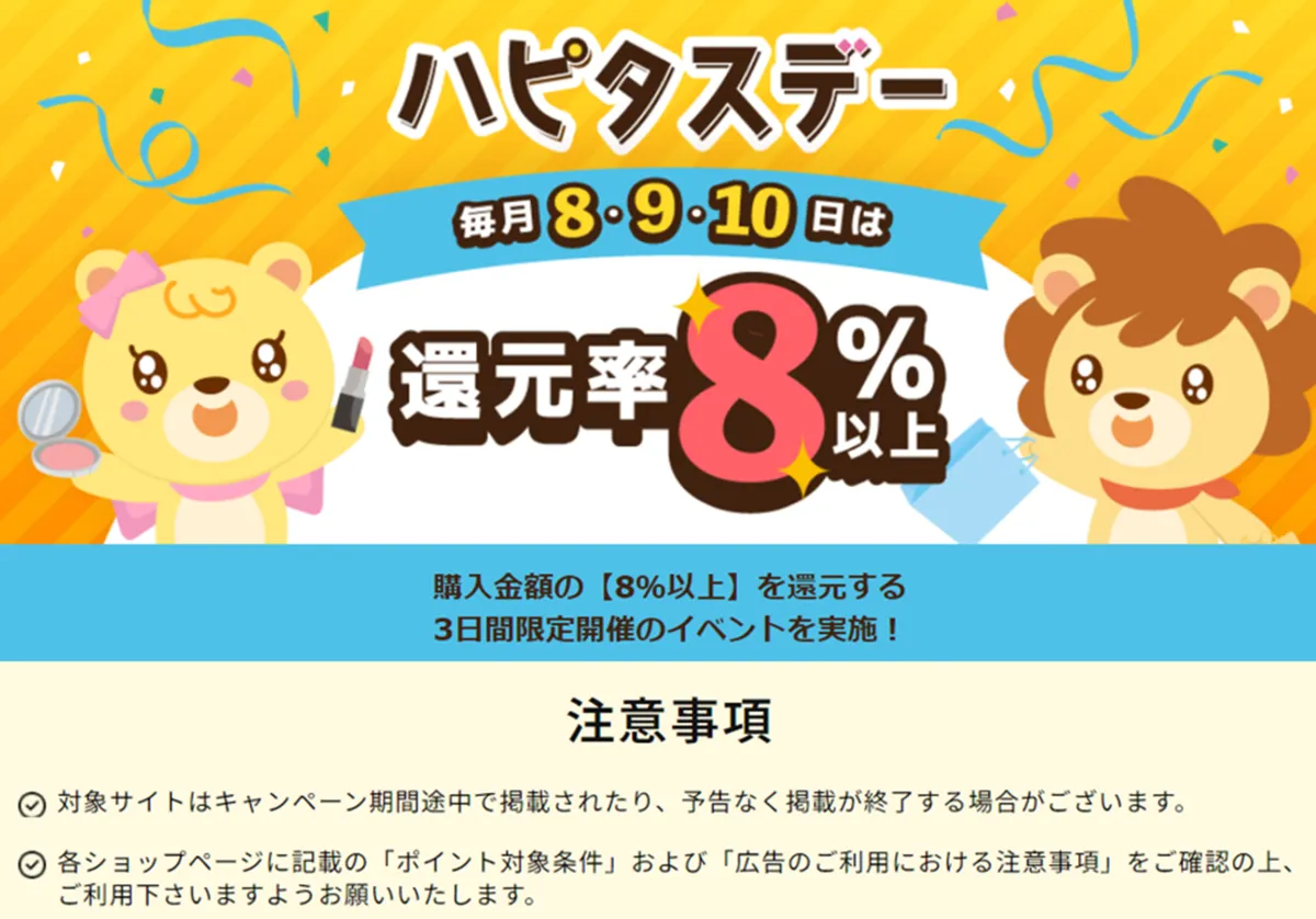 毎月8・9・10日はハピタスデー☆